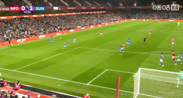 上半场补时第2分钟,恩多耶禁区内起舞,他随后的射门经折射稍稍偏出底线。↓