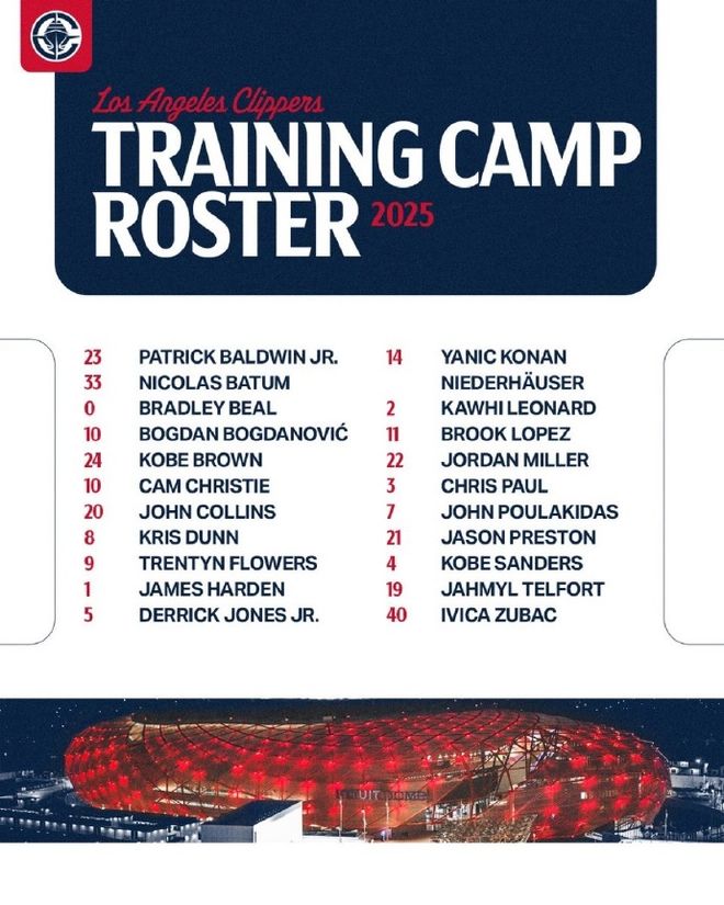 哈登小卡领衔!快船公布新赛季21人训练营大名单